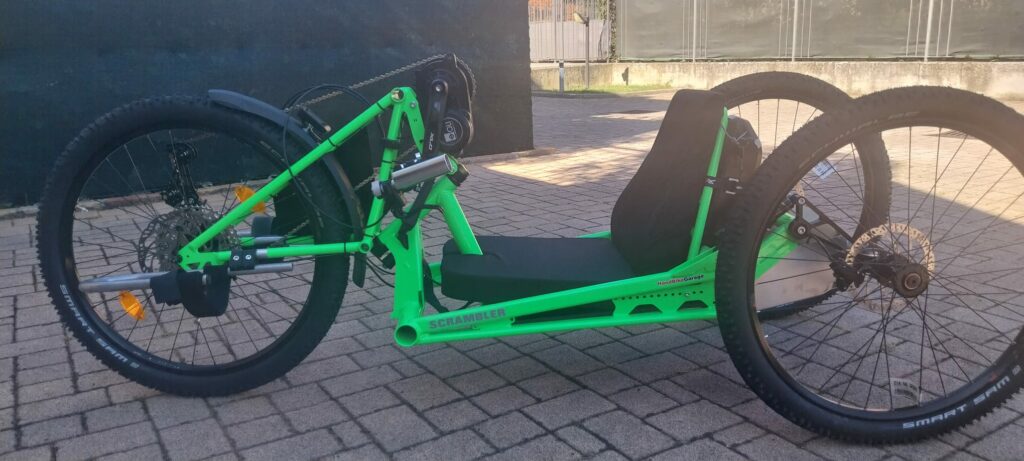 Handbike Scrambler, motore OLI Sport 85Nm 36V,  Freno idraulico Anteriore 203mm,  Freno idraulico posteriore 2x180mm Sospensioni DebonAir con blocco e regolazione rimbalzo, Cambio Meccanico 11 velocità, Paracatena corona e ginocchio, Parafango Anteriore, Doppia batteria 1080Watt, Vano portaoggetti Posteriore. Prezzo listino 8800 Euro Iva Esclusa. Prezzo offerta Fine stagione 8200 Euro Iva 4% inclusa per aventi diritto